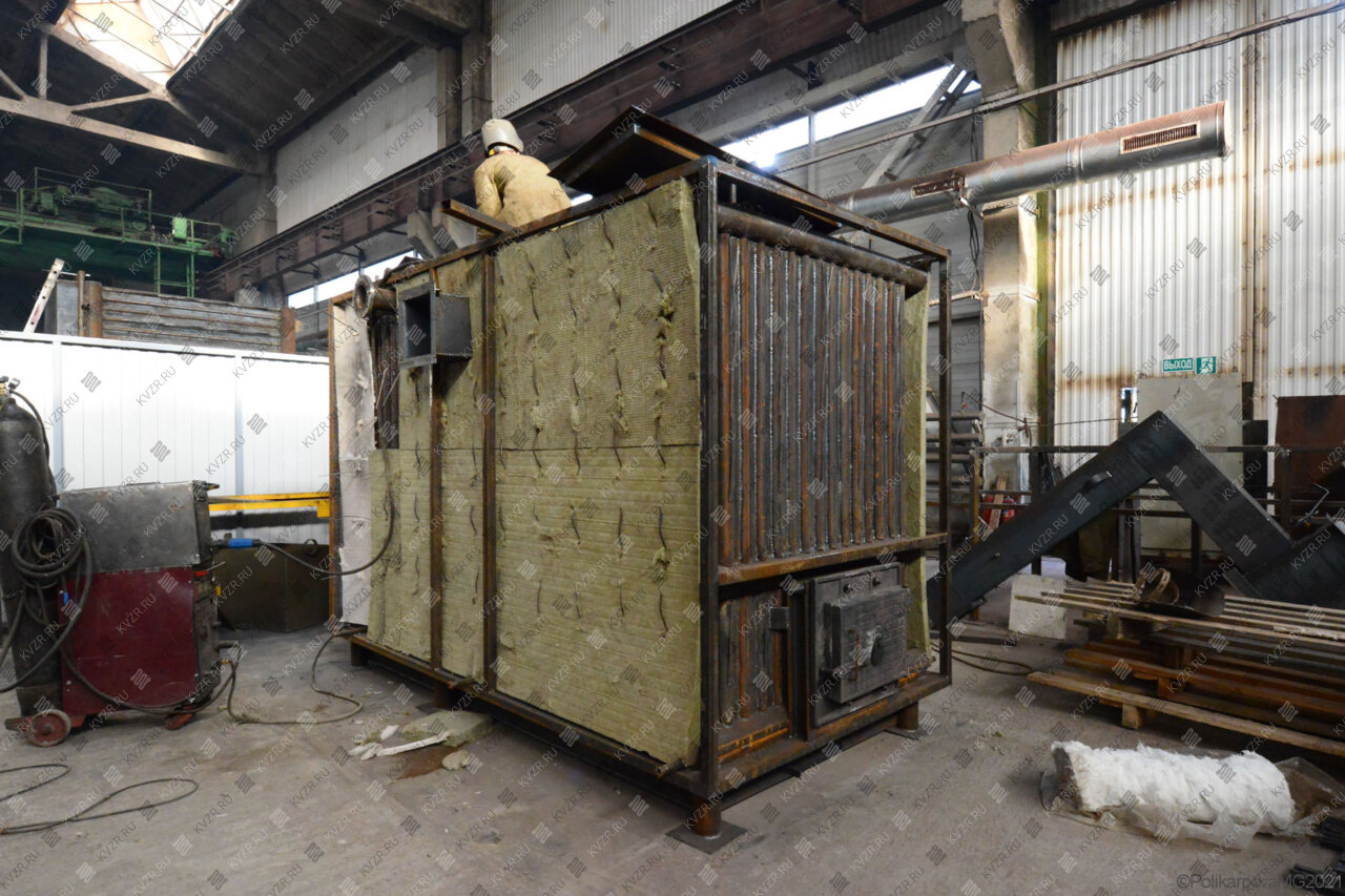 Все водогрейные котлы 1 5 МВт нашего производства - стальные, горизонтальные, водотрубные, прямоточные и компактные. Трубная часть котельного блока выполняется из труб различных диаметров, материал труб сталь 10 и 20. Блок снаружи обваривается стальной охлаждаемой полосой, поэтому в наших котлах исключена возможность задымления котельного зала. Снаружи на каркас из профильной трубы и швеллера крепится утеплитель и декоративная обшивка из полимерного листа. В обшивке предусмотрены лючки для очистки поверхностей нагрева.