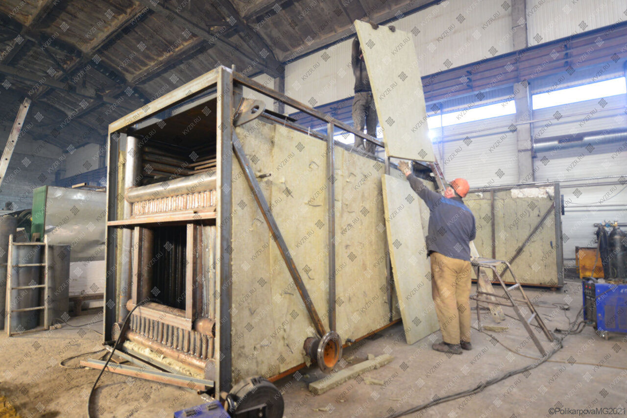 Все водогрейные котлы 4 0 МВт нашего производства - стальные, горизонтальные, водотрубные, прямоточные и компактные. Трубная часть котельного блока выполняется из труб различных диаметров, материал труб сталь 10 и 40. Блок снаружи обваривается стальной охлаждаемой полосой, поэтому в наших котлах исключена возможность задымления котельного зала. Снаружи на каркас из профильной трубы и швеллера крепится утеплитель и декоративная обшивка из полимерного листа. В обшивке предусмотрены лючки для очистки поверхностей нагрева.