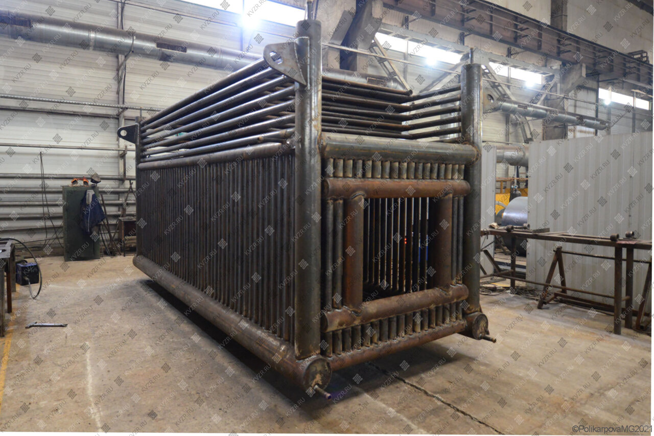 Все водогрейные котлы 3500 кВт нашего производства - стальные, горизонтальные, водотрубные, прямоточные и компактные. Трубная часть котельного блока выполняется из труб различных диаметров, материал труб сталь 10 и 20. Блок снаружи обваривается стальной охлаждаемой полосой, поэтому в наших котлах исключена возможность задымления котельного зала. Снаружи на каркас из профильной трубы и швеллера крепится утеплитель и декоративная обшивка из полимерного листа. В обшивке предусмотрены лючки для очистки поверхностей нагрева.